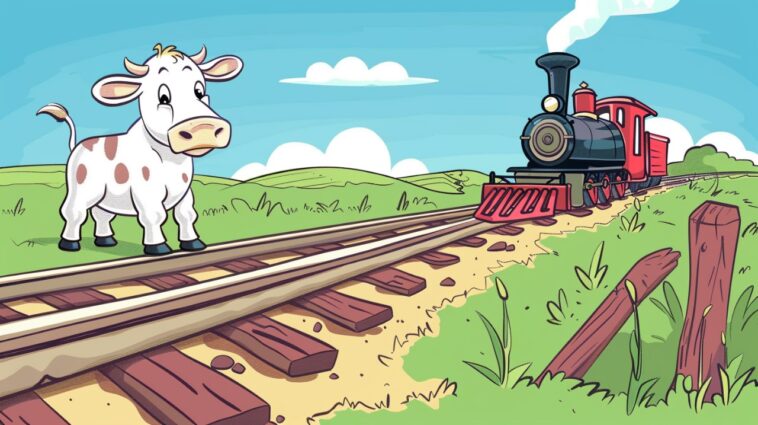 “Cow on the track!” replies the conductor.